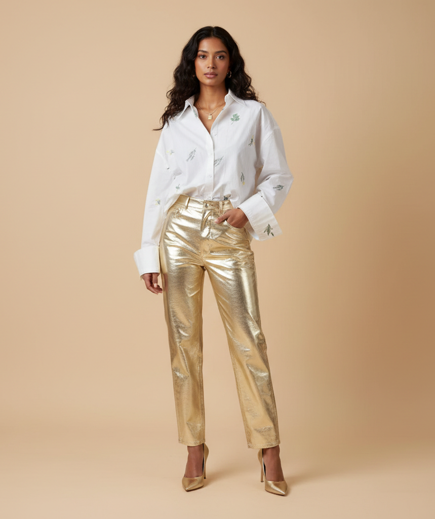 Combine com uma blusa oversized ou uma blusa justa para um contraste moderno e elegante.